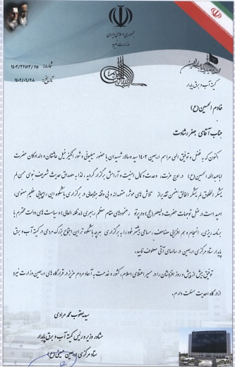 مهندس سید یعقوب محمدمرادی مسئول ستاد بازسازی عتبات عالیات و جانشین ستاد اربعین وزارت نیرو با ارسال لوحهای تقدیر جداگانهای خطاب به دکتر رسول اسماعیلزاده مدیرعامل شرکت برق منطقهای آذربایجان، از وی و تنی چند از همکاران ایشان قدردانی به عمل آورده است.