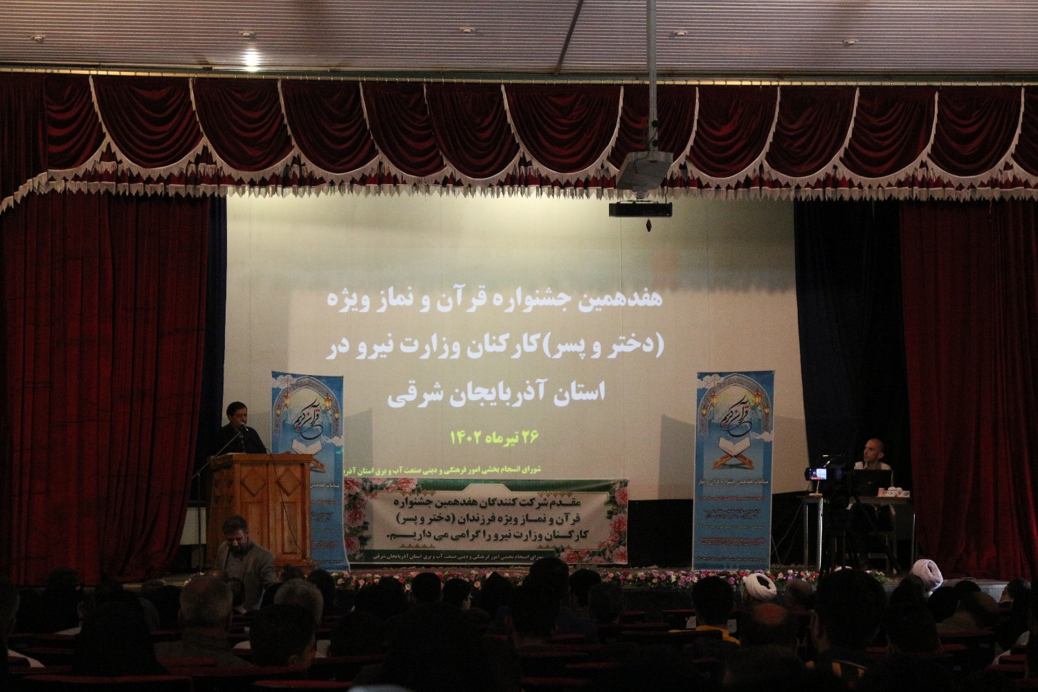 مرحله استانی هفدهمین دوره مسابقات قرآن و نماز فرزندان کارکنان وزارت نیرو در استان آذربایجان شرقی، پیش از ظهر روز دوشنبه ۲۶ تیرماه طی مراسمی در محل سالن اجتماعات مجتمع عالی آموزشی و پژوهشی صنعت آب و برق آذربایجان برگزار شد.