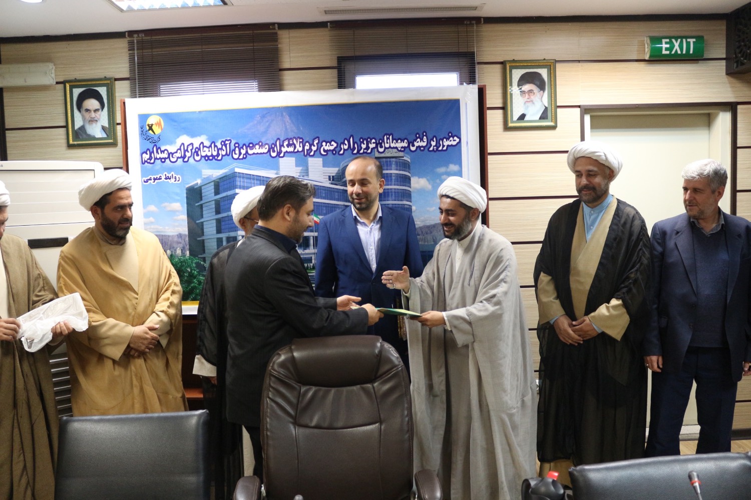 سپس حجت الاسلام آقاجانی دبیر ستاد اقامه نماز استان آذربایجان شرقی با موضوع "نماز و مهدویت" مطالبی را بیان داشته و سپس لوحهای تقدیر جداگانهای به دکتر اسماعیلزاده مدیرعامل و آقای احد عزیمی دبیر ستاد اقامه نماز شرکت برق منطقه آذربایجان به لحاظ کسب رتبه شایسته سپاس در خصوص "ترویج فرهنگ نورانی نماز" در بین دستگاههای اجرای استان اعطا و از عملکرد شرکت برق منطقهای آذربایجان در این خصوص صمیمانه قدردانی نمود.