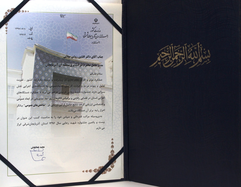 یک افتخار دیگر برای شرکت برق منطقه ای آذربایجان