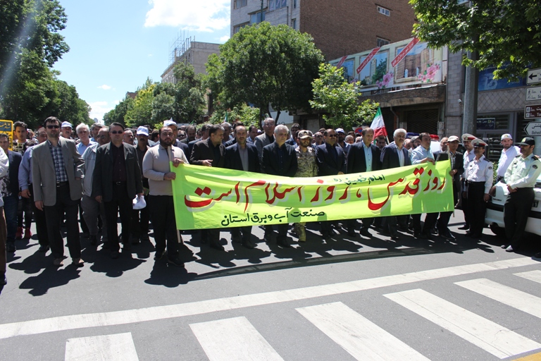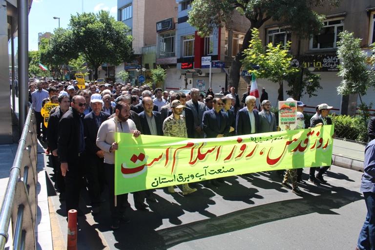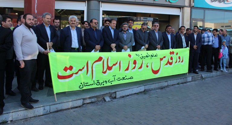 جمع کثیری از مدیران و کارکنان صنعت آب و برق آذربایجان شرقی با حضور پرشور خود، در راهپیمایی روز جهانی قدس شرکت کردند.