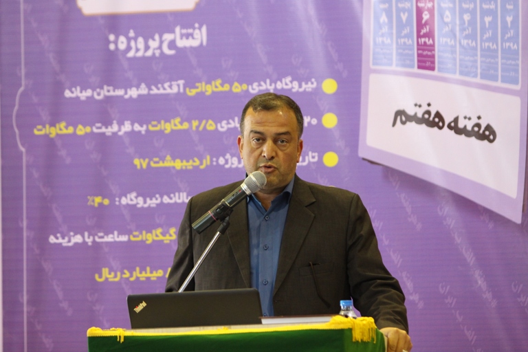 نیروگاه بادی ۵۰ مگاواتی آقکند در شهرستان میانه استان آذربایجان شرقی افتتاح شد
